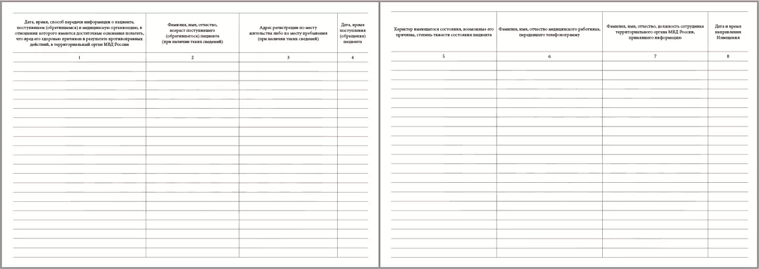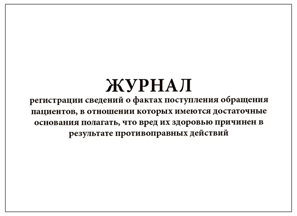 В журнал регистрации сведений о фактах поступления обращения пациентов, в отношении которых имеются достаточные основания полагать, что вред их здоровью причинен в результате противоправных действий вносятся следующие сведения: