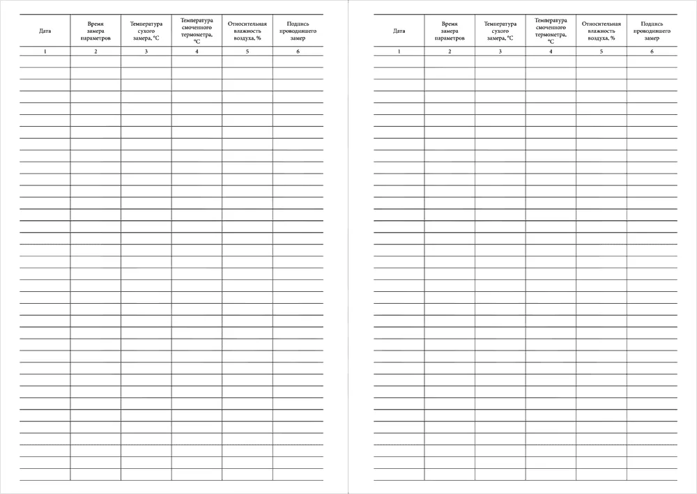 Графы для заполнения Журнала регистрации температуры и влажности воздуха:
