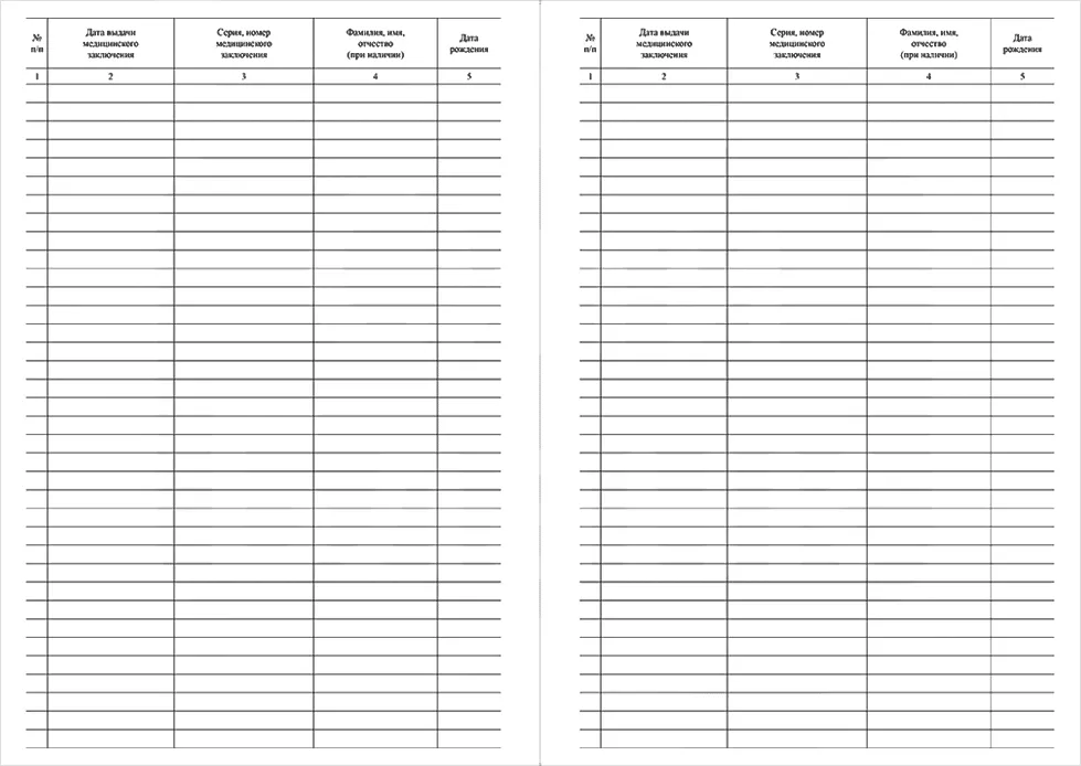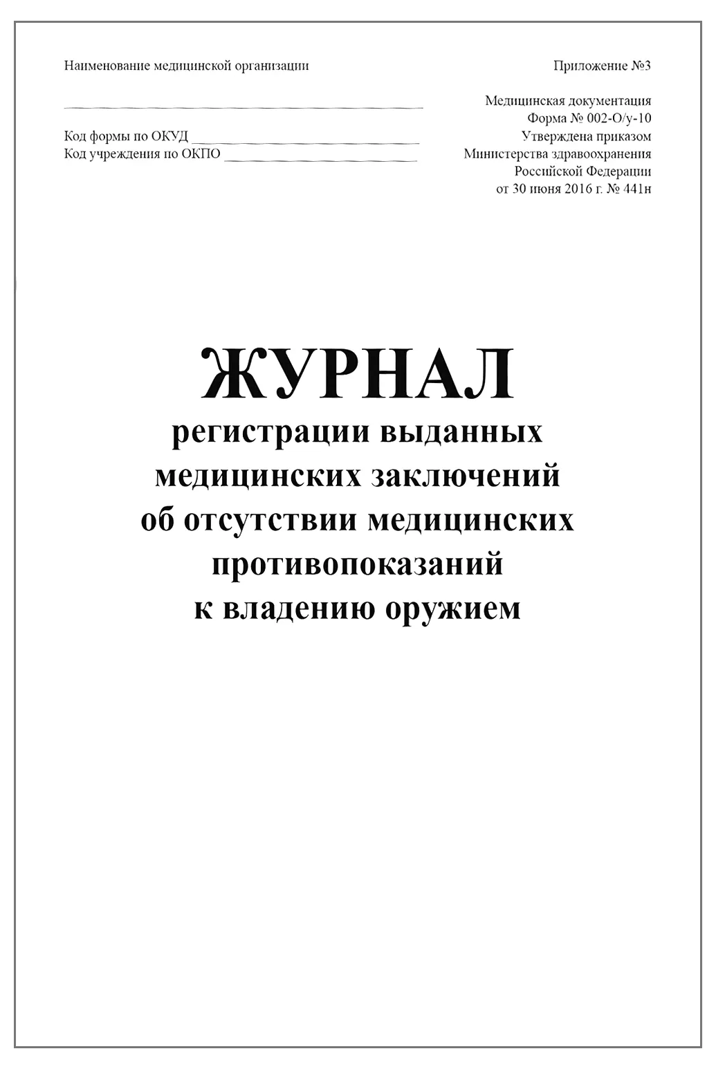 Журнал регистрации выданных медицинских заключений об отсутствии медицинских противопоказаний к владению оружием форма N 002-О/у-10.