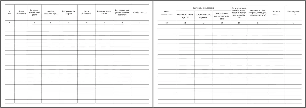 Графы для заполнения журнала Журнал серологических исследований крови (форма N 14-вет):