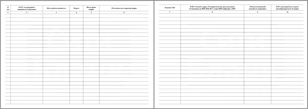 - Ф.И.О. больного, адрес, N истории болезни, дата и результат обследования на ВИЧ, ВГВ, ВГС, стадия ВИЧ-инфекции, АРВТ
