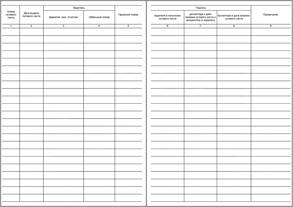 Журнал учета движения путевых листов (форма № 8) применяется организацией для контроля за движением путевых листов, выданных водителю, и сдачей обработанных путевых листов в бухгалтерию.