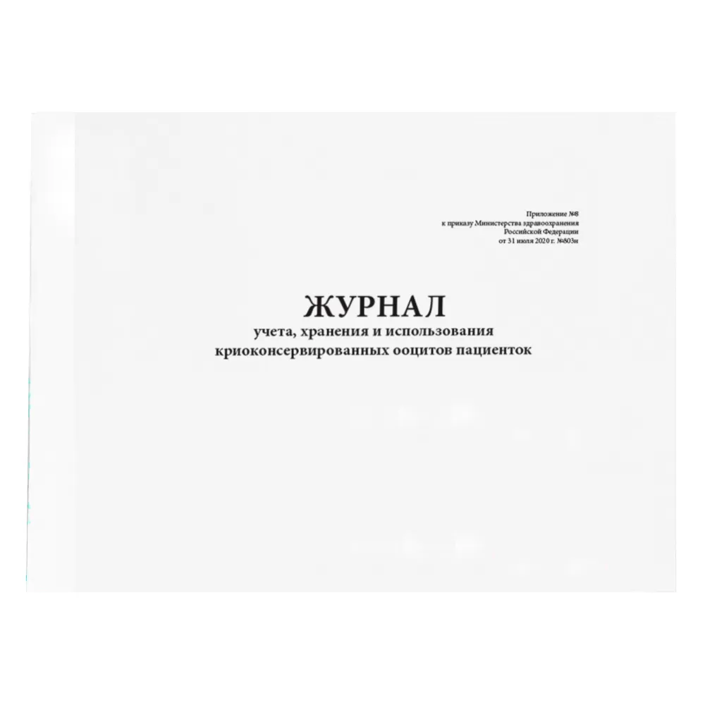 Журнал учета, хранения и использования криоконсервированных ооцитов пациенток. Приложение № 8. Приказ Министерства здравоохранения РФ от 31 июля 2020 г. № 803н "О порядке использования вспомогательных репродуктивных технологий, противопоказаниях и ограничениях к их применению".