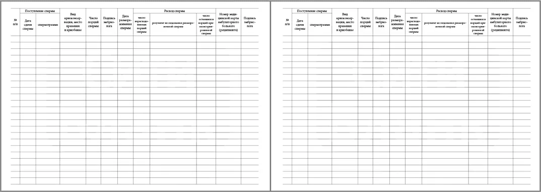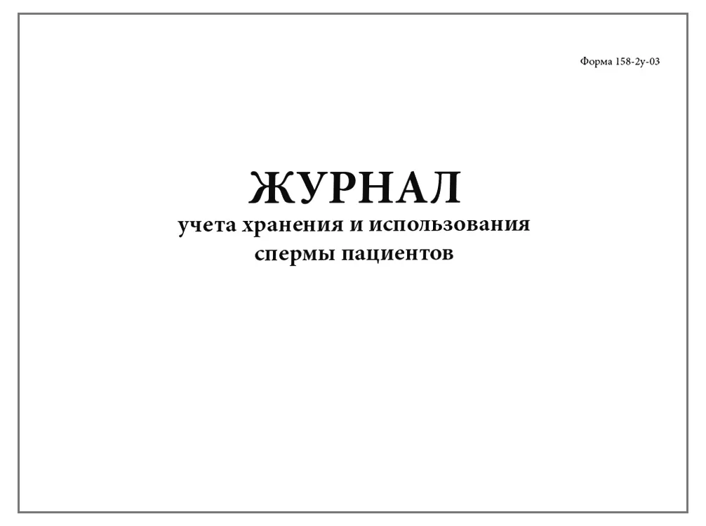 Графы для заполнения Журнала учета, хранения и использования спермы пациентов. Форма 158-2у-03: