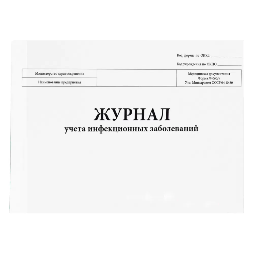 Журнал учета инфекционных заболеваний, форма №060/у служит для персонального учета больных инфекционными заболеваниями и регистрации обмена информацией между лечебно-профилактическими учреждениями и СЭС.