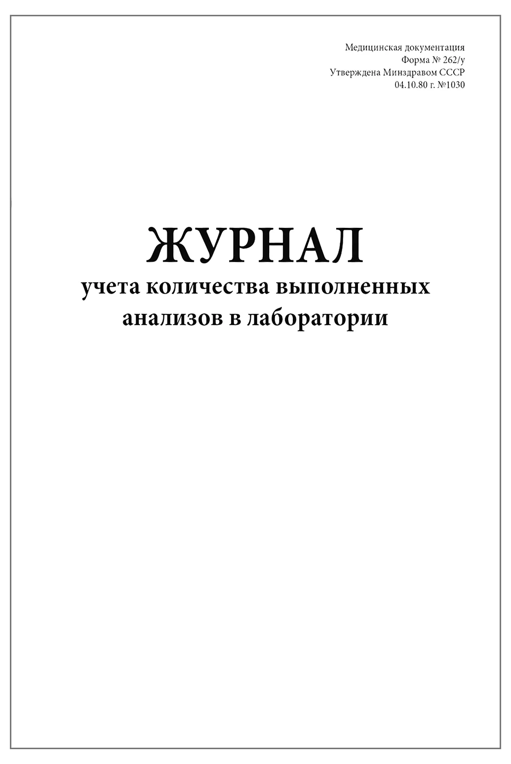 Графы для заполнения журнала учета количества выполненных анализов в лаборатории, форма 262/у Минздравсоцразвития РФ: