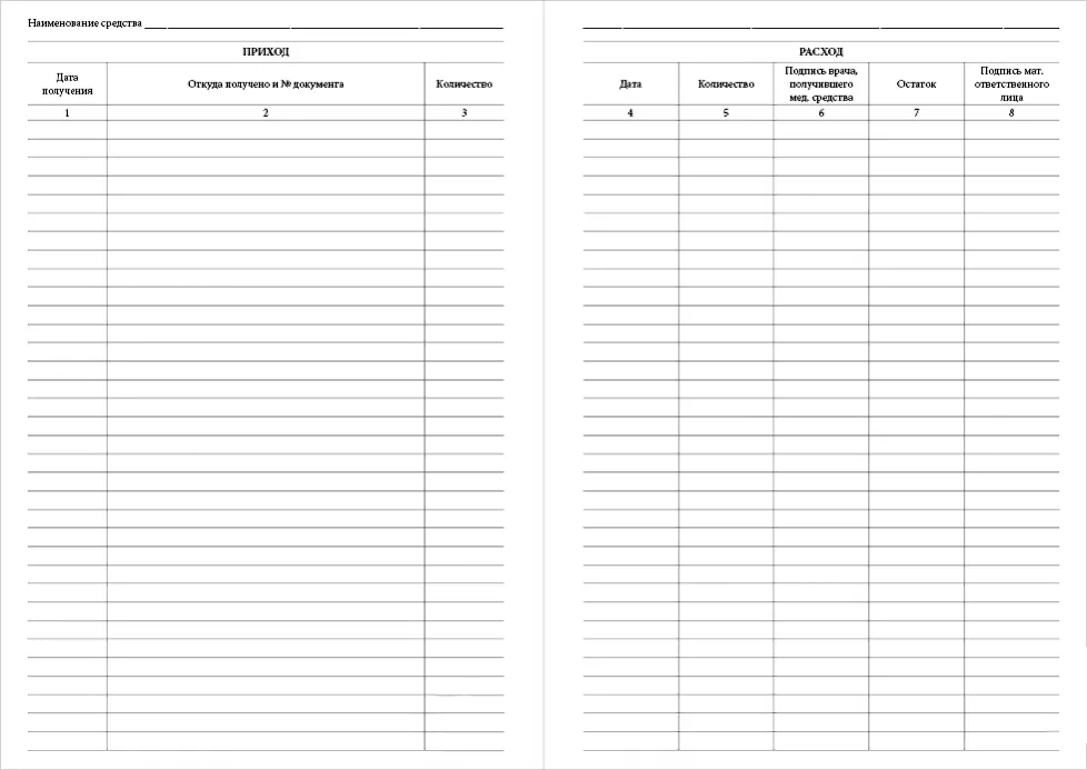 Журнал учета лекарственных средств, подлежащих предметно-количественному учету 60 страниц мягкая обложка шнуровка