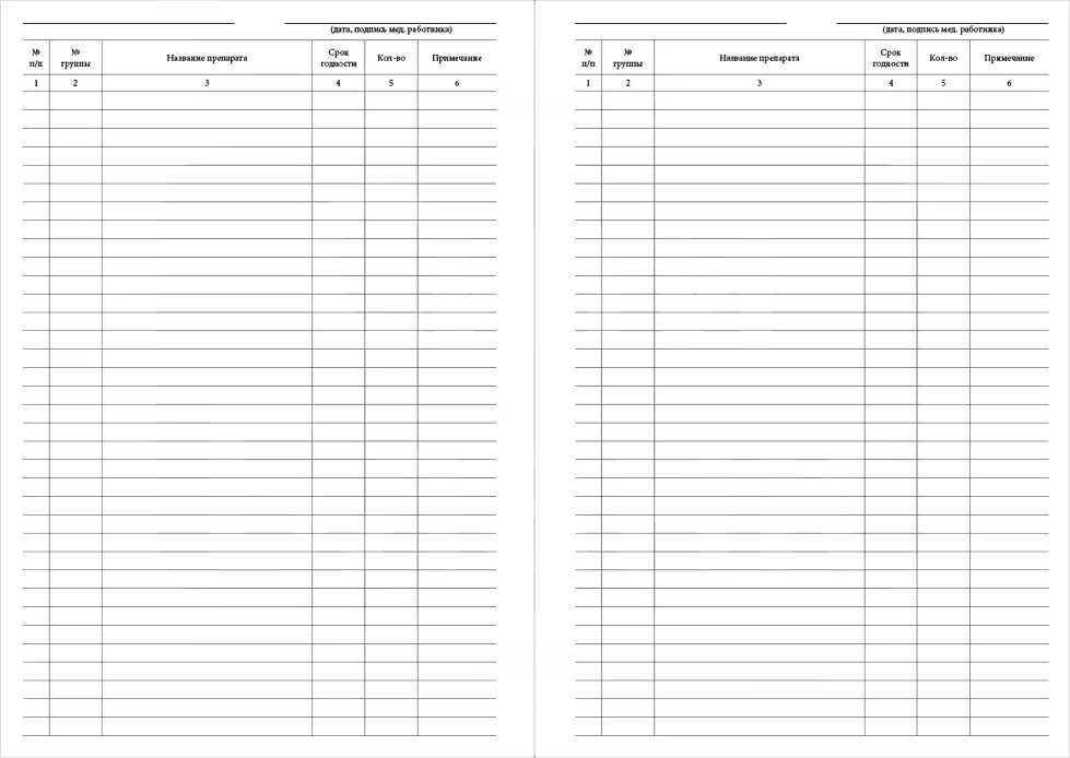 Графы для заполнения Журнала учета медикаментов в аптечках и сроки их годности: