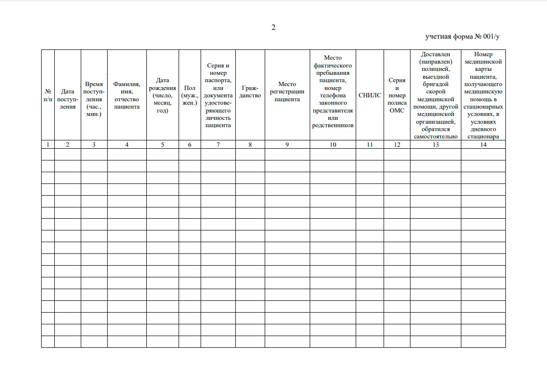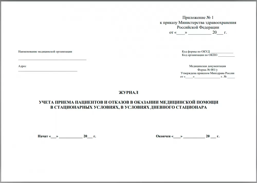 Журнал учета приема пациентов и отказов в оказании медицинской помощи в стационарных условиях, в условиях дневного стационара.