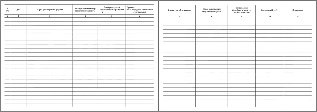 Графы для заполнения Журнала учета проведения технического обслуживания и ремонтных работ: