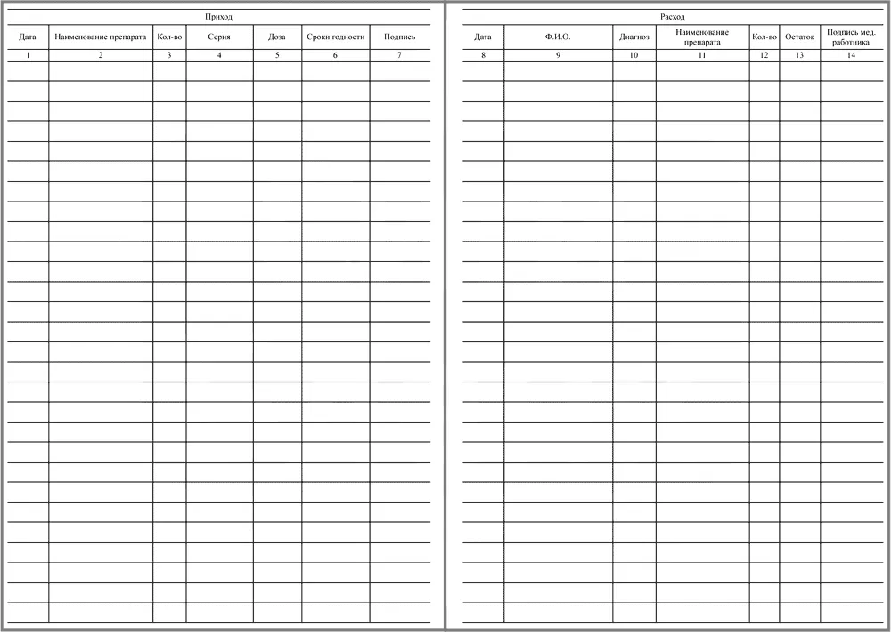 Графы для заполнения Журнала учета сильнодействующих препаратов: