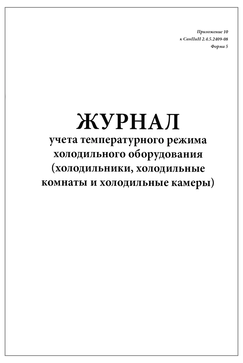 Журнал учета температурного режима холодильного оборудования (холодильники, холодильные комнаты и холодильные камеры) разработан и утвержден согласно СанПин 2.4.5.2409-08 Приложение 10, Форма 5 и предназначен для учета информации о температурных режимах хранения в холодильном оборудовании с целью контроля за соблюдением условий и сроков хранения скоропортящихся пищевых продуктов.
