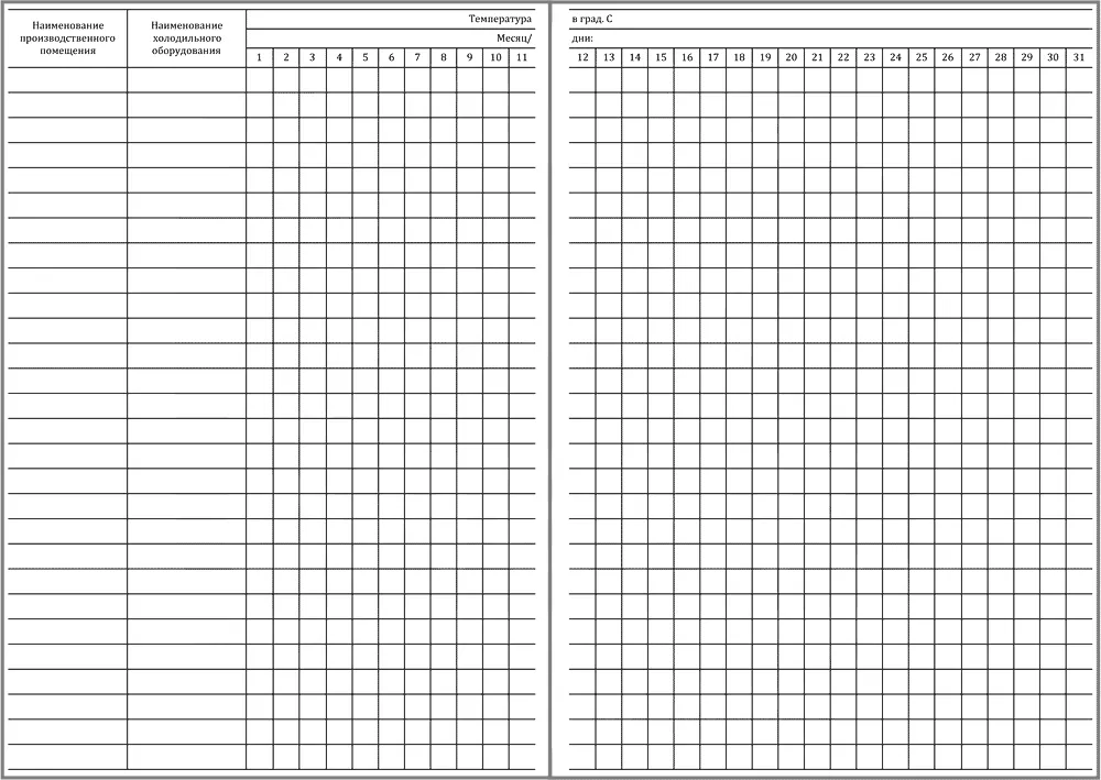 Графы для заполнения Журнала учета температурного режима холодильного оборудования (холодильники, холодильные комнаты и холодильные камеры):