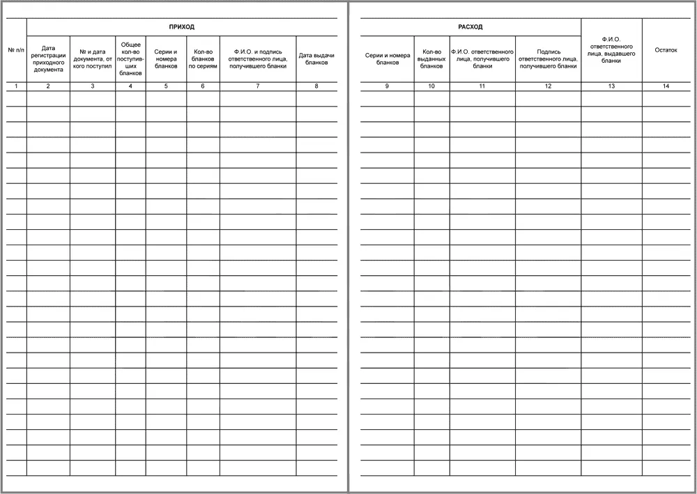 - Расход/Ф.И.О. ответственного лица, получившего бланки