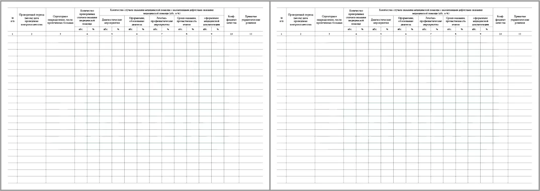 Графы для заполнения журнала внутреннего контроля качества медицинской деятельности: