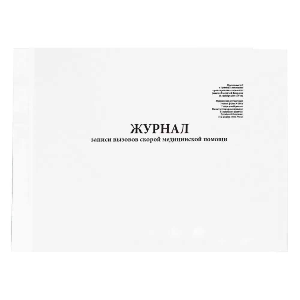 Журнал записи вызовов скорои_ медицинскои_ помощи (форма 109-у) Приложение № 2 к Приказу Минздрава № 942.